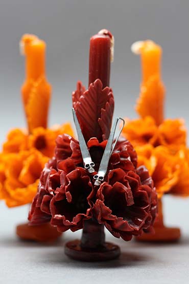 Con la lámpara de alcohol y los instrumentos para modelar la cera, es cómo comieza de forma tangible la creación de la pieza.